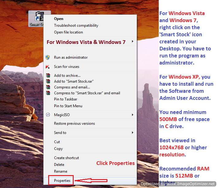 ইন্সটল শেষ হলে স্মার্টস্টক ডেস্কটপ আইকনে রাইট ক্লিক করে Properties নির্বাচন করুন।