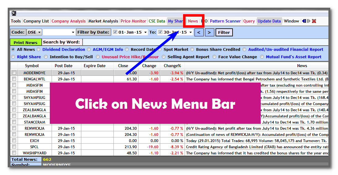 স্মার্ট স্টক এ আপনি রিয়েল টাইম শেয়ার মার্কেট নিউজ পেতে পারেন ।